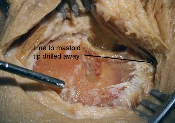 - The dura wall has already been mentioned, this is slightly harder and bleeds a bit more than the normal mastoid cavity. If you see this you know you are close to the wall and you can try and slowly expose the rest of the wall.